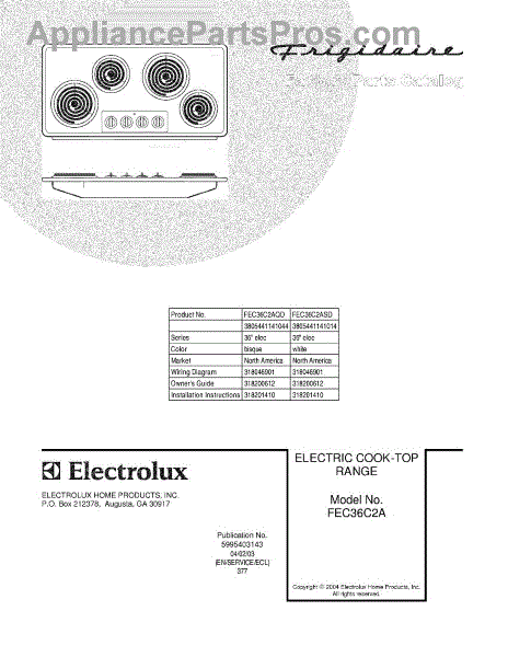 Parts for Frigidaire FEC36C2AQD: 01 - Cover Parts