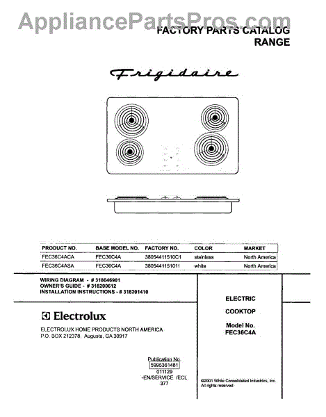 Parts for Frigidaire FEC36C4ACA: 01 - Cover Parts