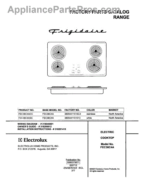 Parts for Frigidaire FEC36C4ACC: 01 - Cover Parts