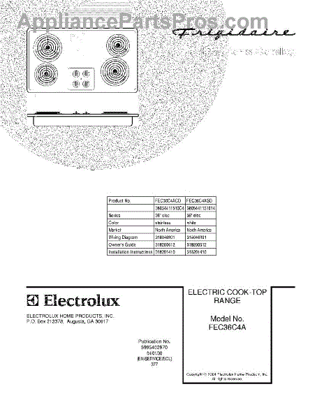 Parts for Frigidaire FEC36C4ACD: 01 - Cover Parts
