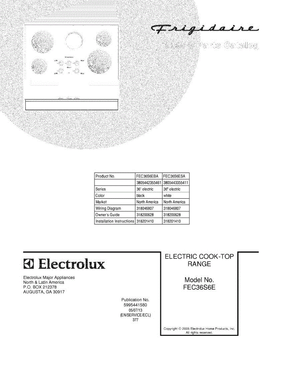 Parts for Frigidaire FEC36S6ESA: 01 - Cover Parts
