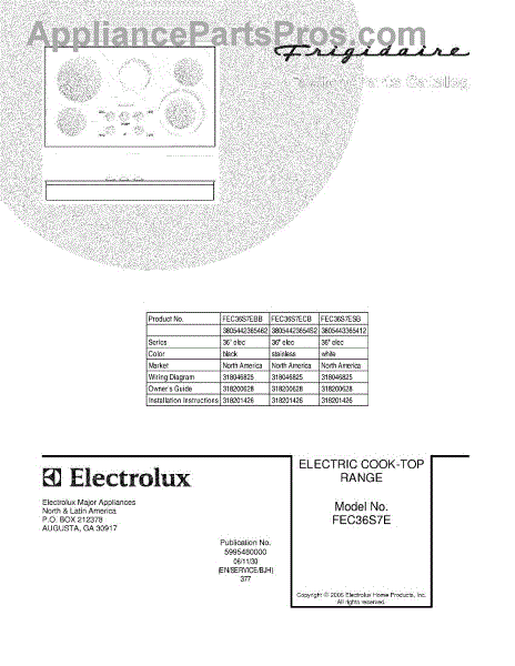 Parts for Frigidaire FEC36S7ECB: 01 - Cover Parts