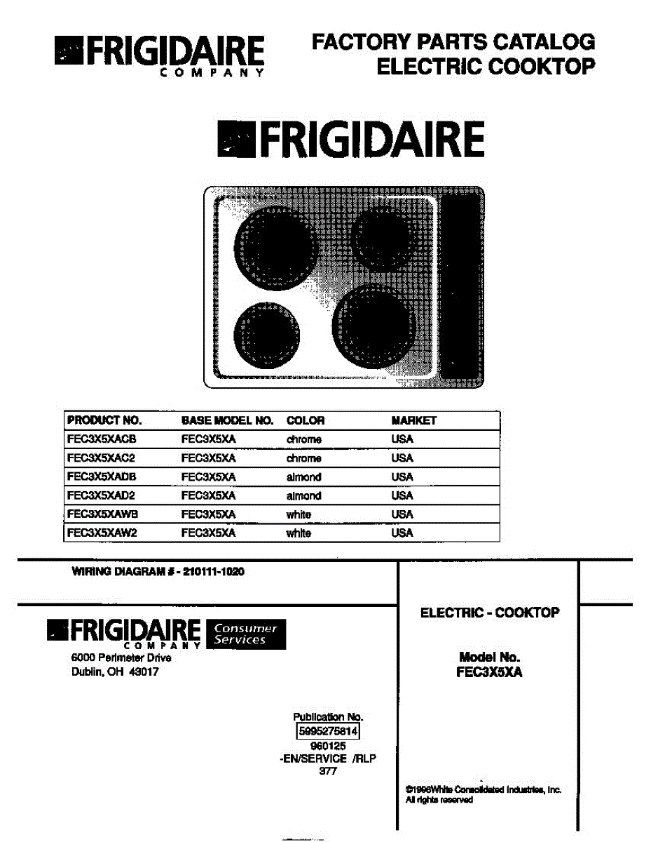 Parts for Frigidaire FEC3X5XACB: 01 - Cover Parts