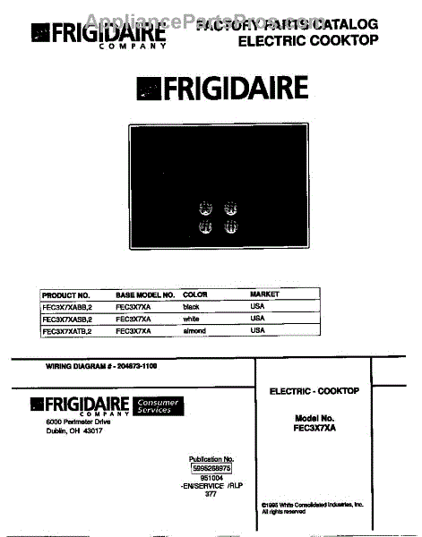 Parts for Frigidaire FEC3X7XATB: 01 - Cover Parts