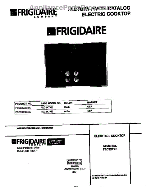 Parts for Frigidaire FEC3X7XEBA: 01 - Cover Parts