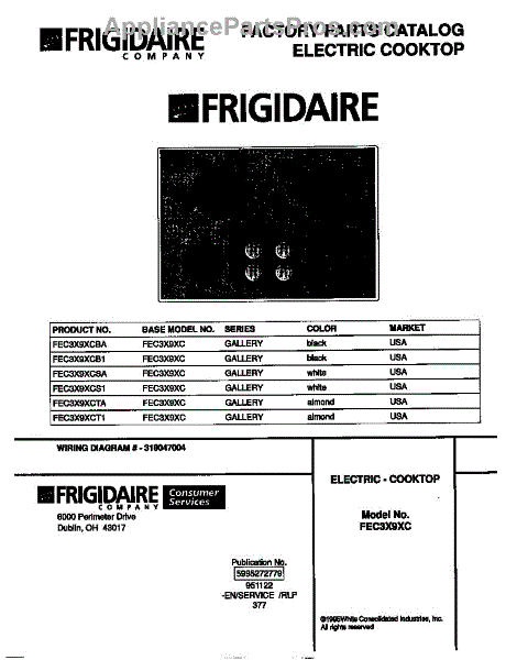 Parts for Frigidaire FEC3X9XCSA: 01 - Cover Parts