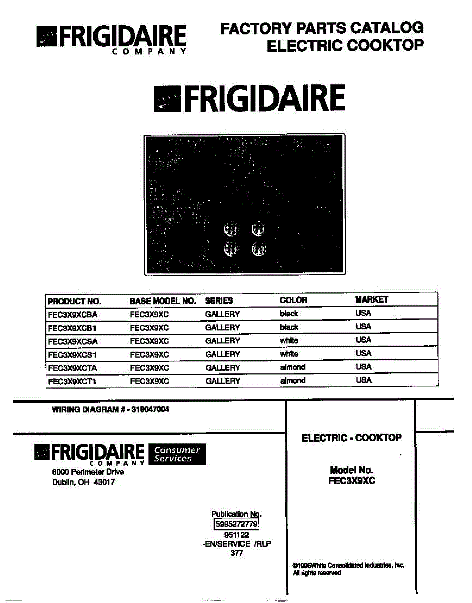 Parts for Frigidaire FEC3X9XCT1: 01 - Cover Parts
