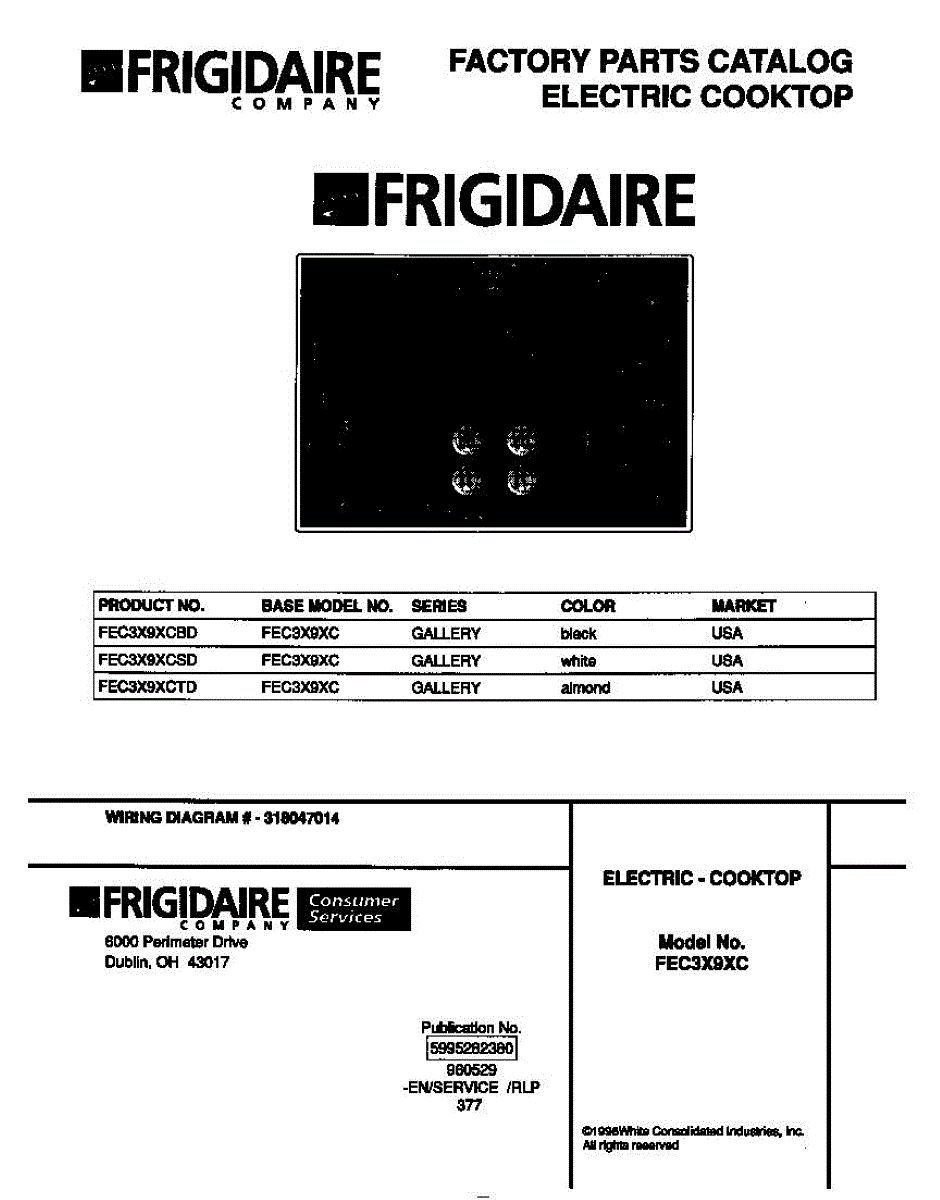Parts for Frigidaire FEC3X9XCTD: 01 - Cover Parts