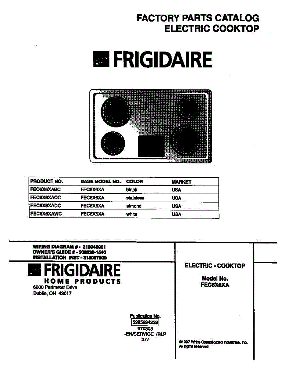 Parts for Frigidaire FEC6X6XAWC: 01 - Cover Parts