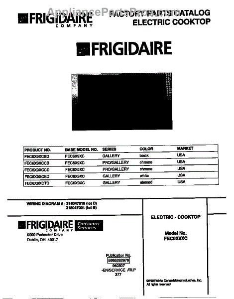 Parts for Frigidaire FEC6X9XCBD: 01 - Cover Parts