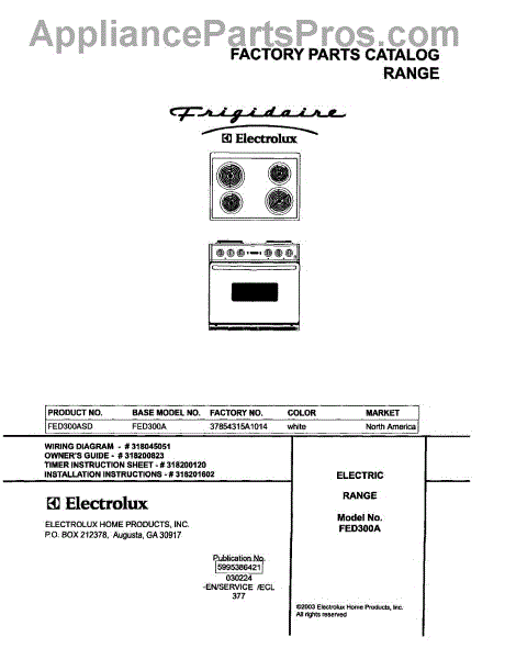 Parts for Frigidaire FED300ASD: 01 - Cover Parts