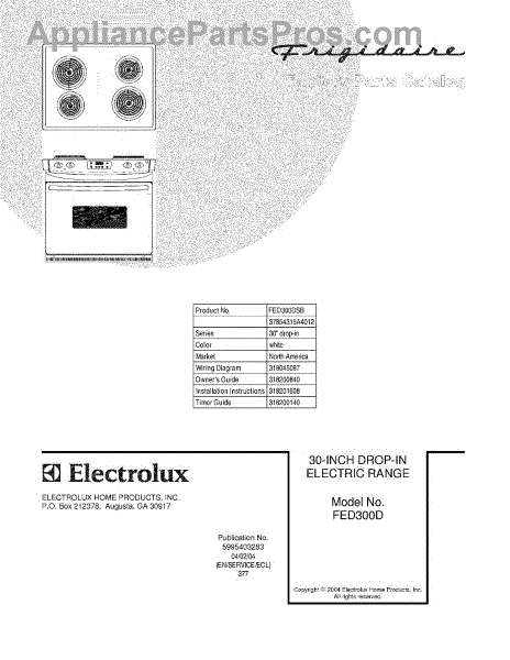 Parts for Frigidaire FED300DSB: 01 - Cover Parts