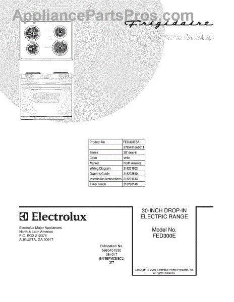 Parts for Frigidaire FED300ESA: 01 - Cover Parts