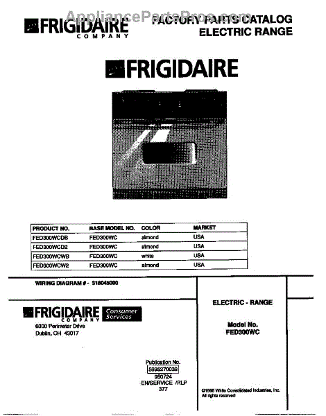 Parts for Frigidaire FED300WCD2: 01 - Cover Parts