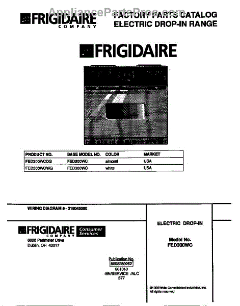 Parts for Frigidaire FED300WCDG: 01 - Cover Parts