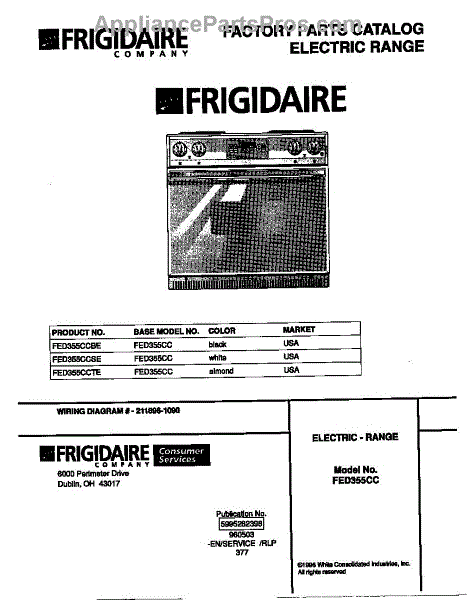 Parts for Frigidaire FED355CCBE: 01 - Cover Parts