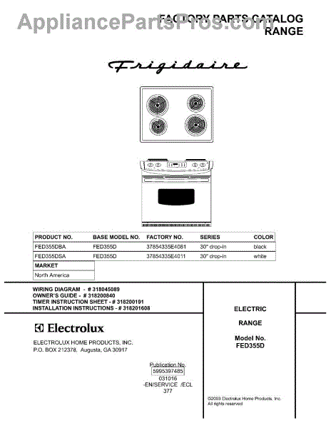 Parts for Frigidaire FED355DBA: 01 - Cover Parts