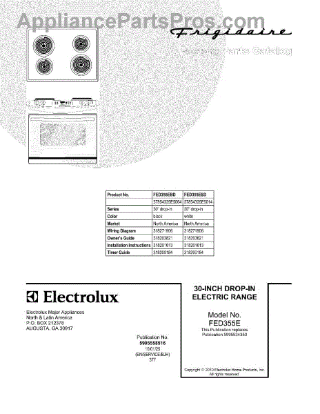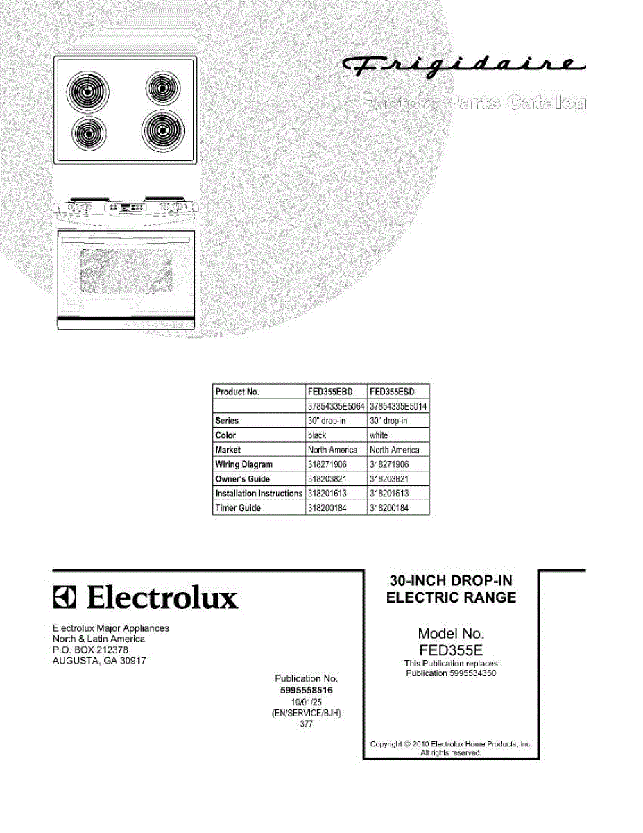 Parts for Frigidaire FED355EBD: 01 - Cover Parts