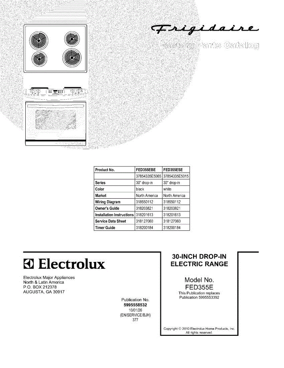 Parts for Frigidaire FED355ESE: 01 - Cover Parts