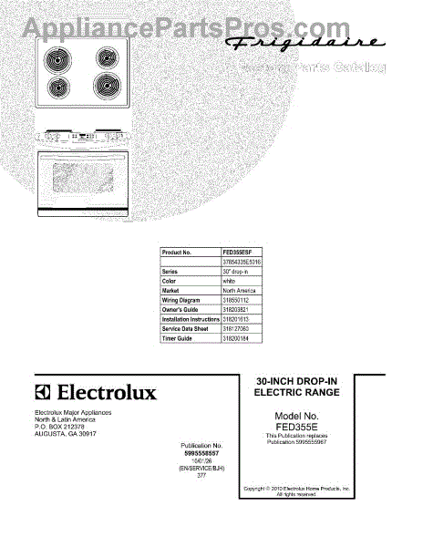 Parts for Frigidaire FED355ESF: 01 - Cover Parts