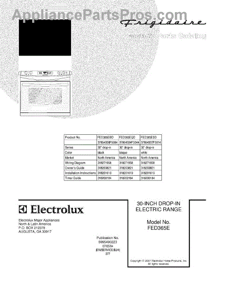 Parts for Frigidaire FED365EBD: 01 - Cover Parts