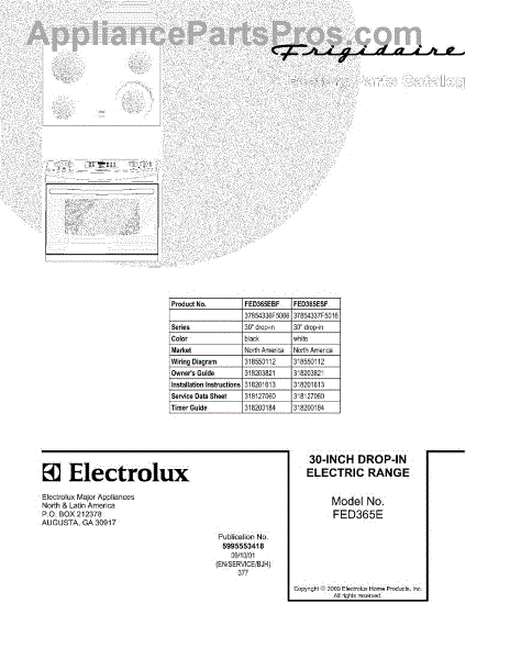 Parts for Frigidaire FED365EBF: 01 - Cover Parts