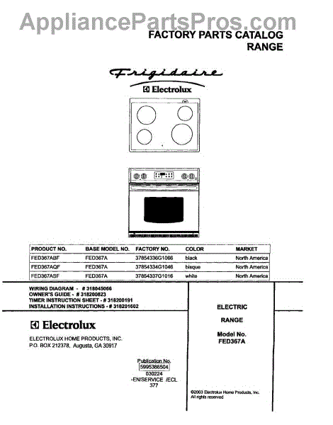Parts for Frigidaire FED367AQF: 01 - Cover Parts