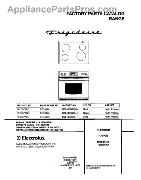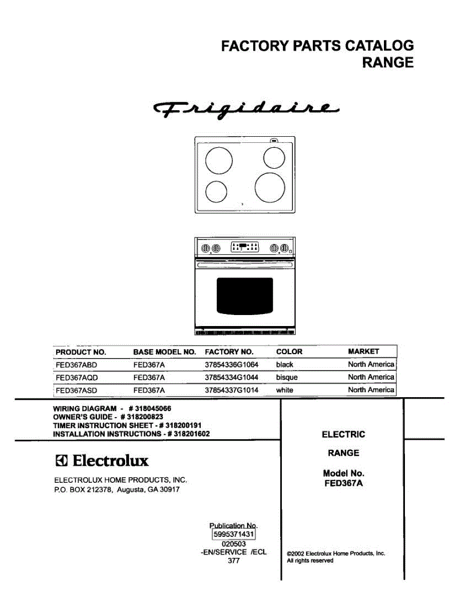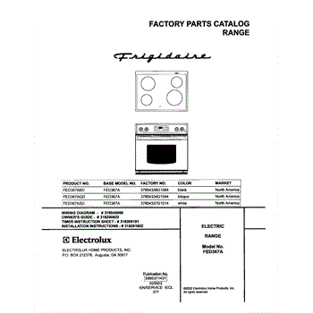 Parts for Frigidaire FED367ASD: 01 - Cover Parts