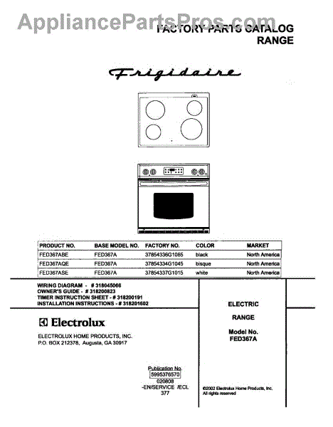 Parts for Frigidaire FED367ASE: 01 - Cover Parts