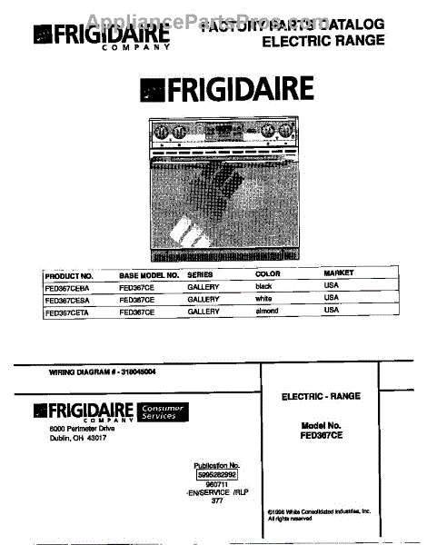 Parts for Frigidaire FED367CETA: 01 - Cover Parts