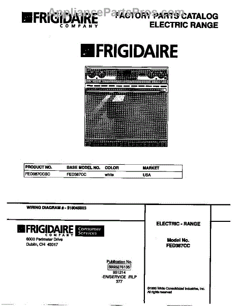 Parts for Frigidaire FED387CCSC: 01 - Cover Parts