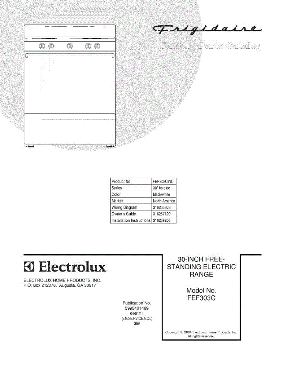 Parts for Frigidaire FEF303CWC: 01 - Cover Parts