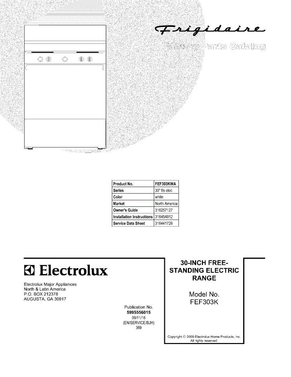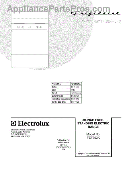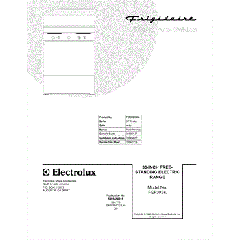 Parts for Frigidaire FEF303KWA: 01 - Cover Parts