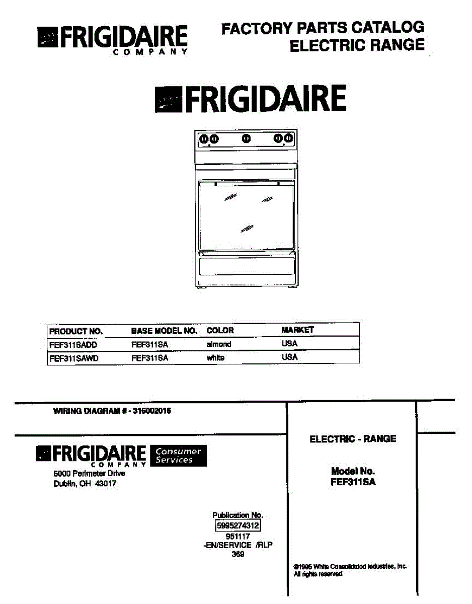 Parts for Frigidaire FEF311SADD: 01 - Cover Parts