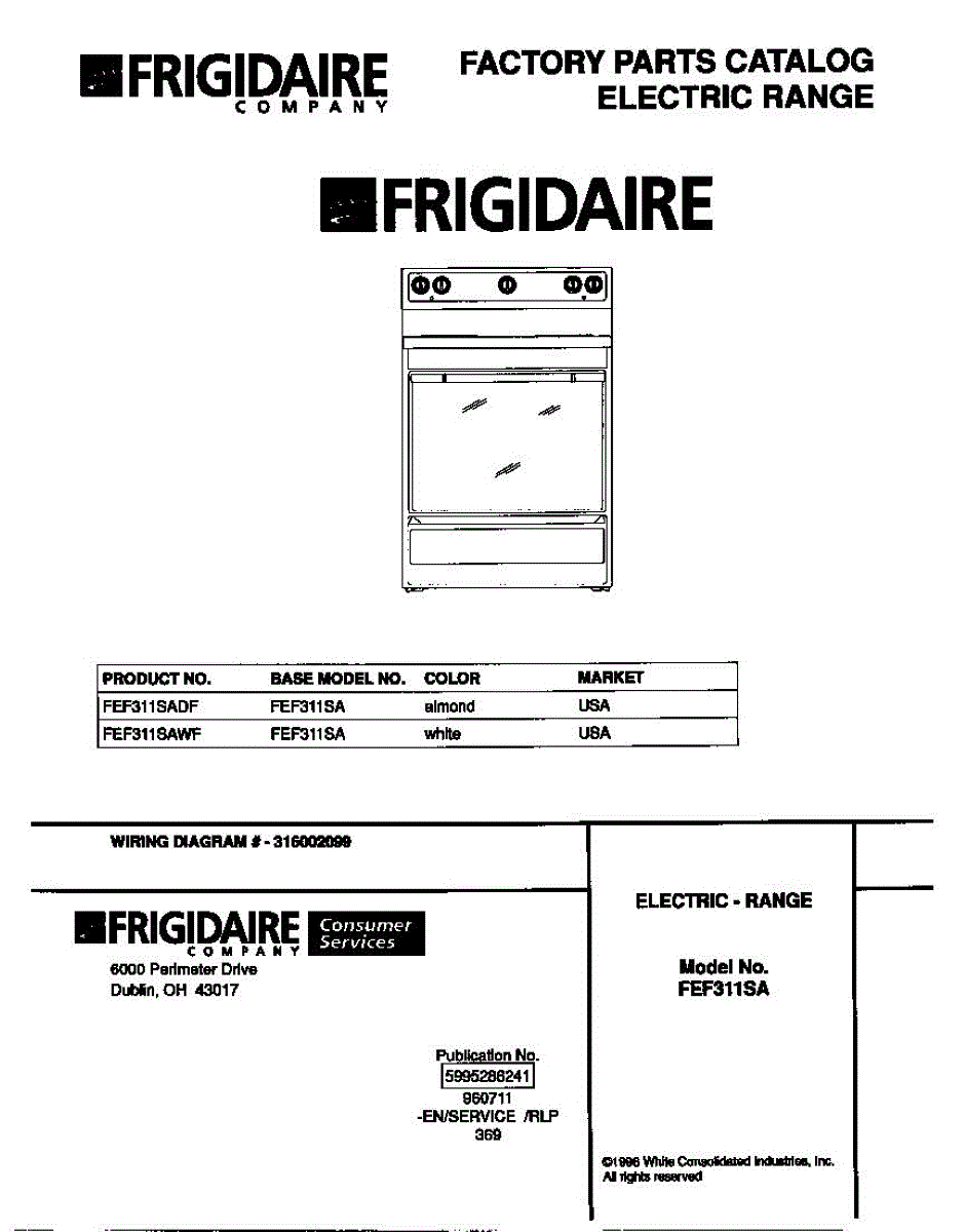 Parts for Frigidaire FEF311SADF: 01 - Cover Parts