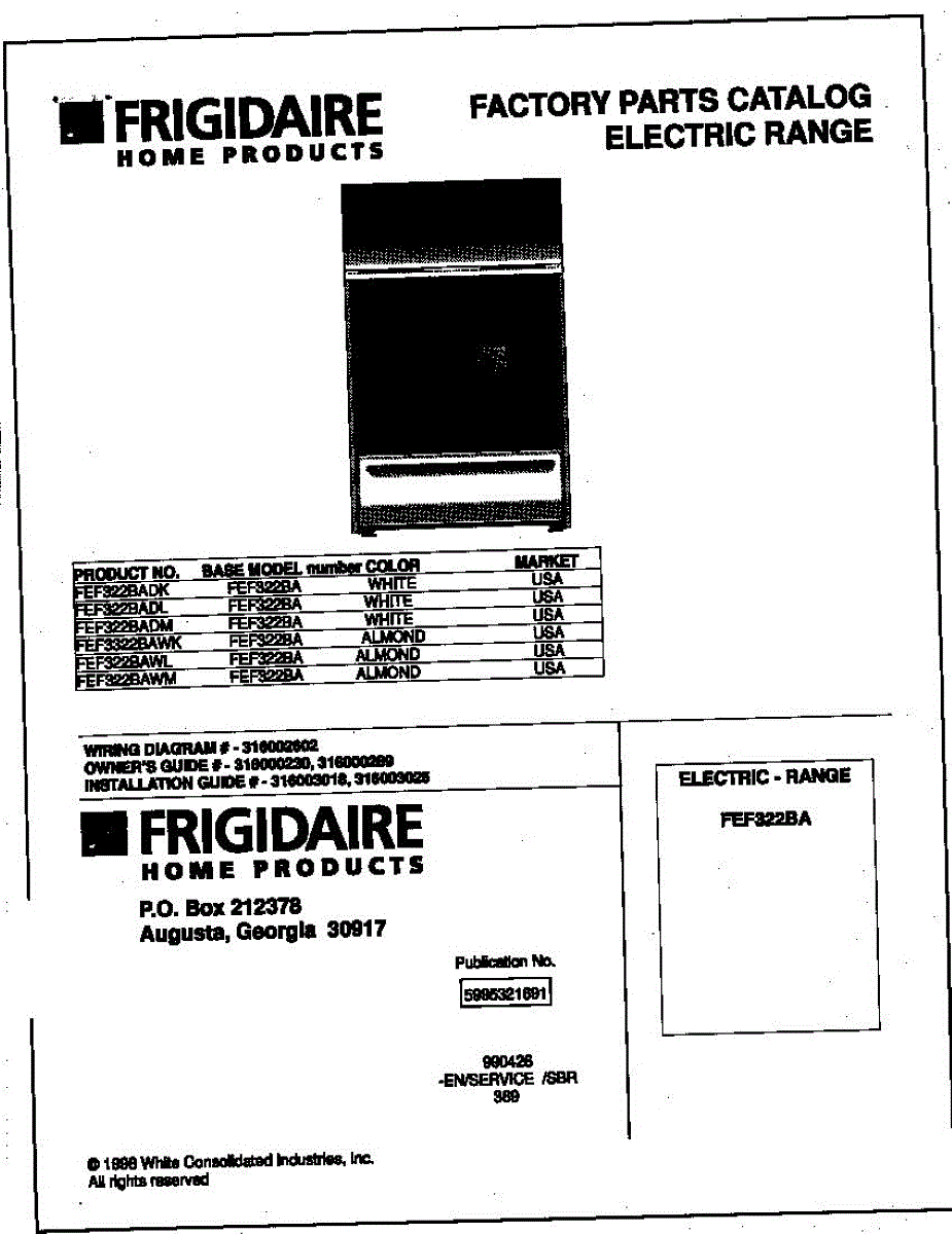 Parts for Frigidaire FEF322BADL: 01 - Cover Parts