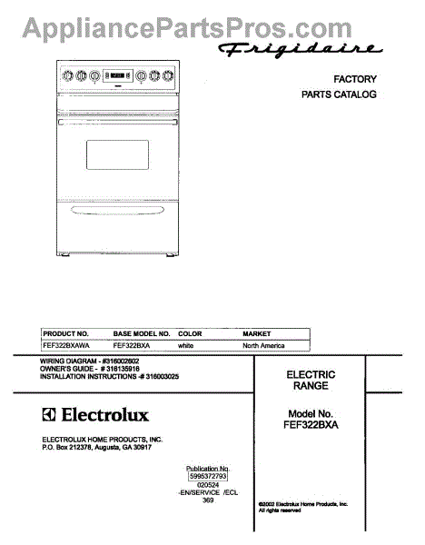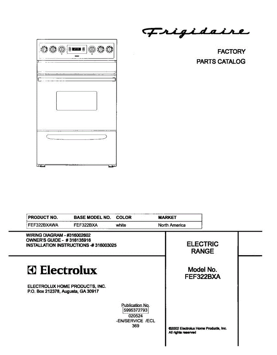 Parts for Frigidaire FEF322BXAWA: 01 - Cover Parts
