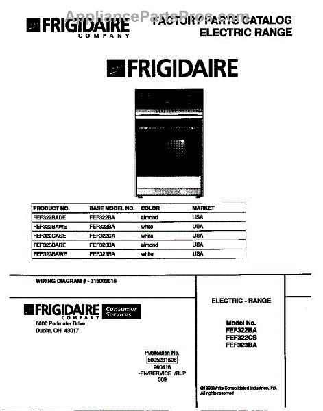 Parts for Frigidaire FEF322CASE: 01 - Cover Parts