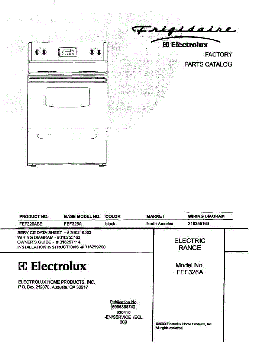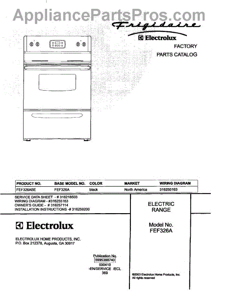 Parts for Frigidaire FEF326ABE: 01 - Cover Parts