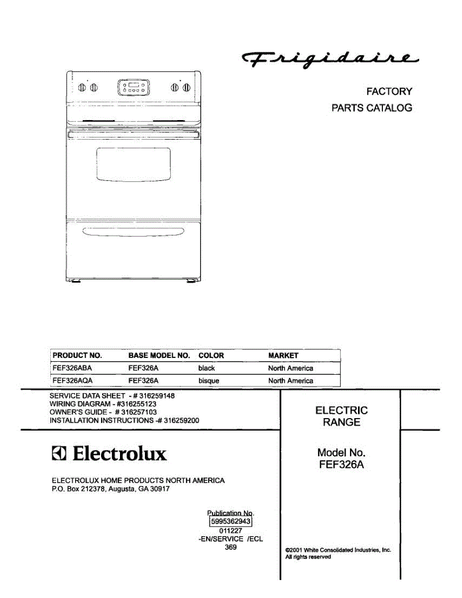 Parts for Frigidaire FEF326AQA: 01 - Cover Parts