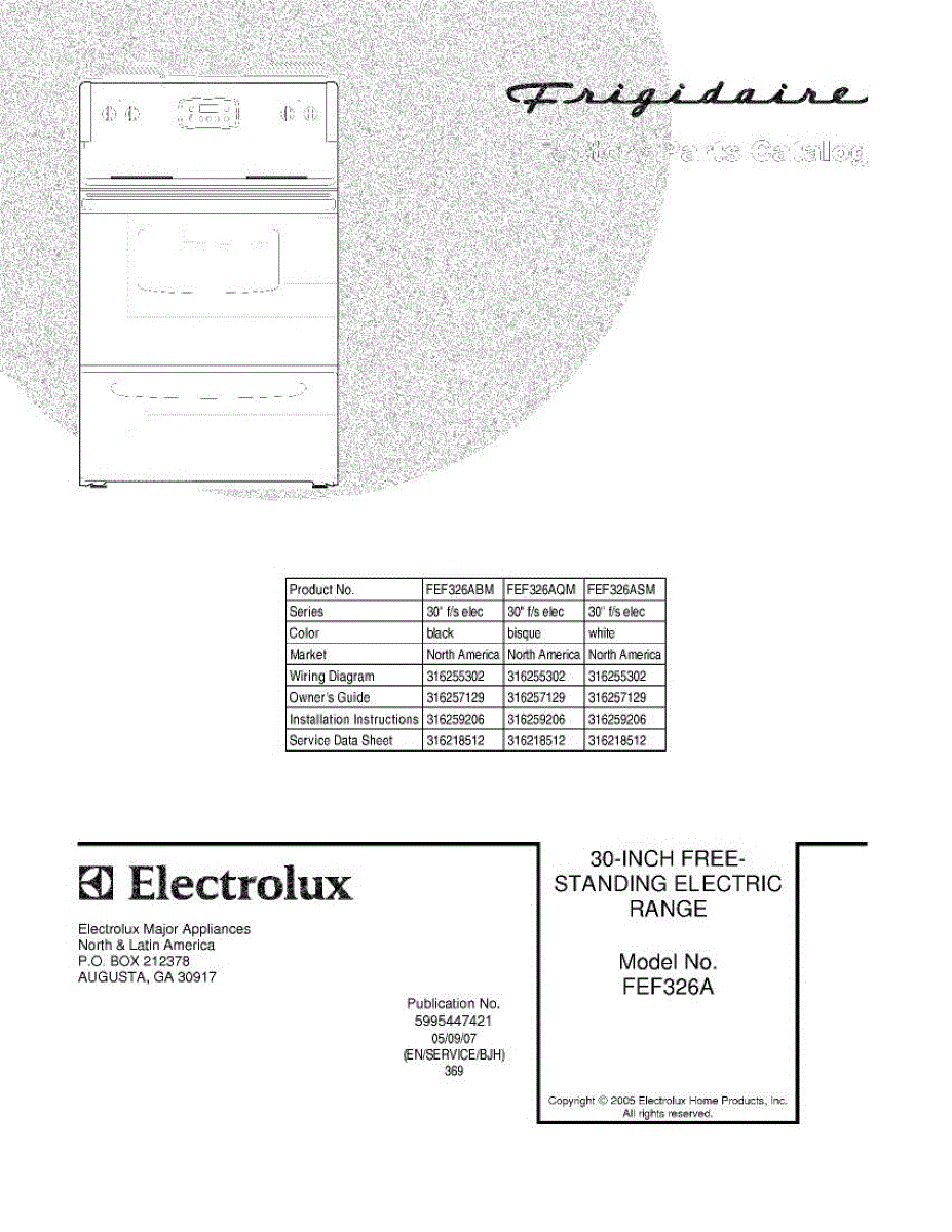Parts for Frigidaire FEF326AQM: 01 - Cover Parts