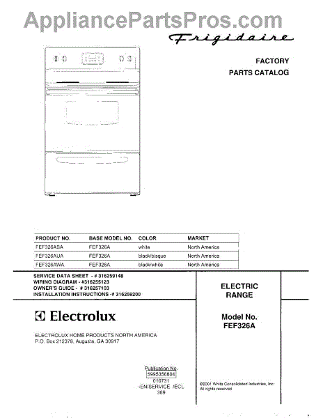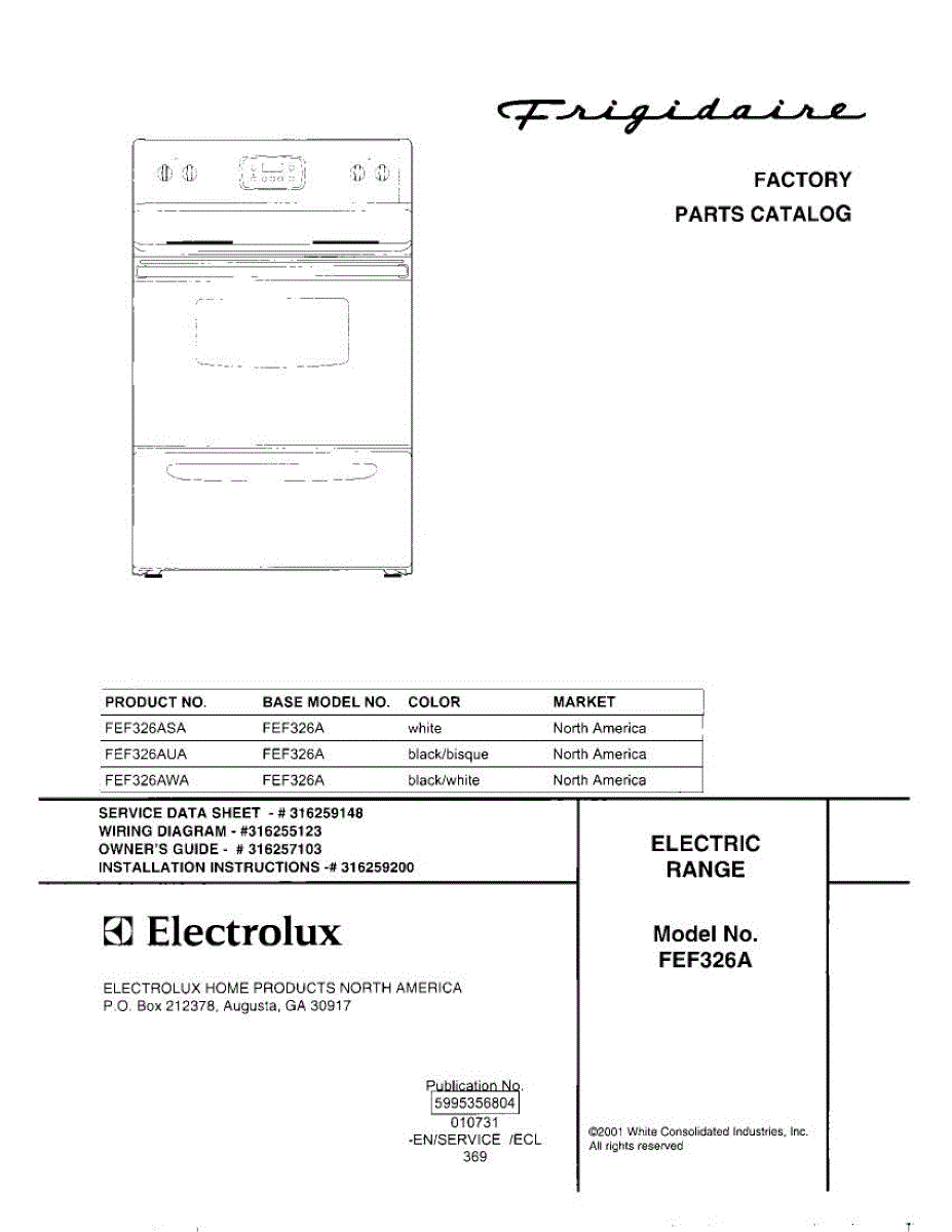 Parts for Frigidaire FEF326AUA: 01 - Cover Parts