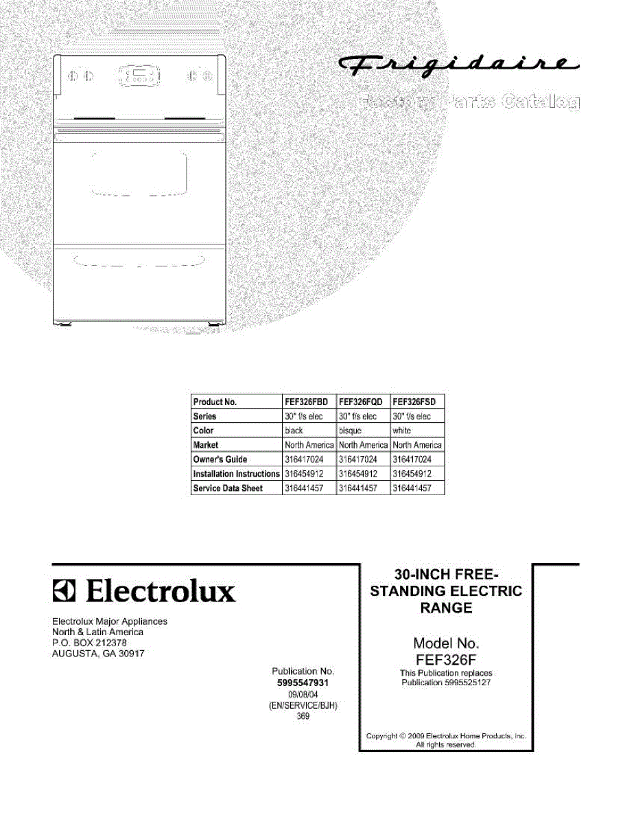 Parts for Frigidaire FEF326FQD: 01 - Cover Parts
