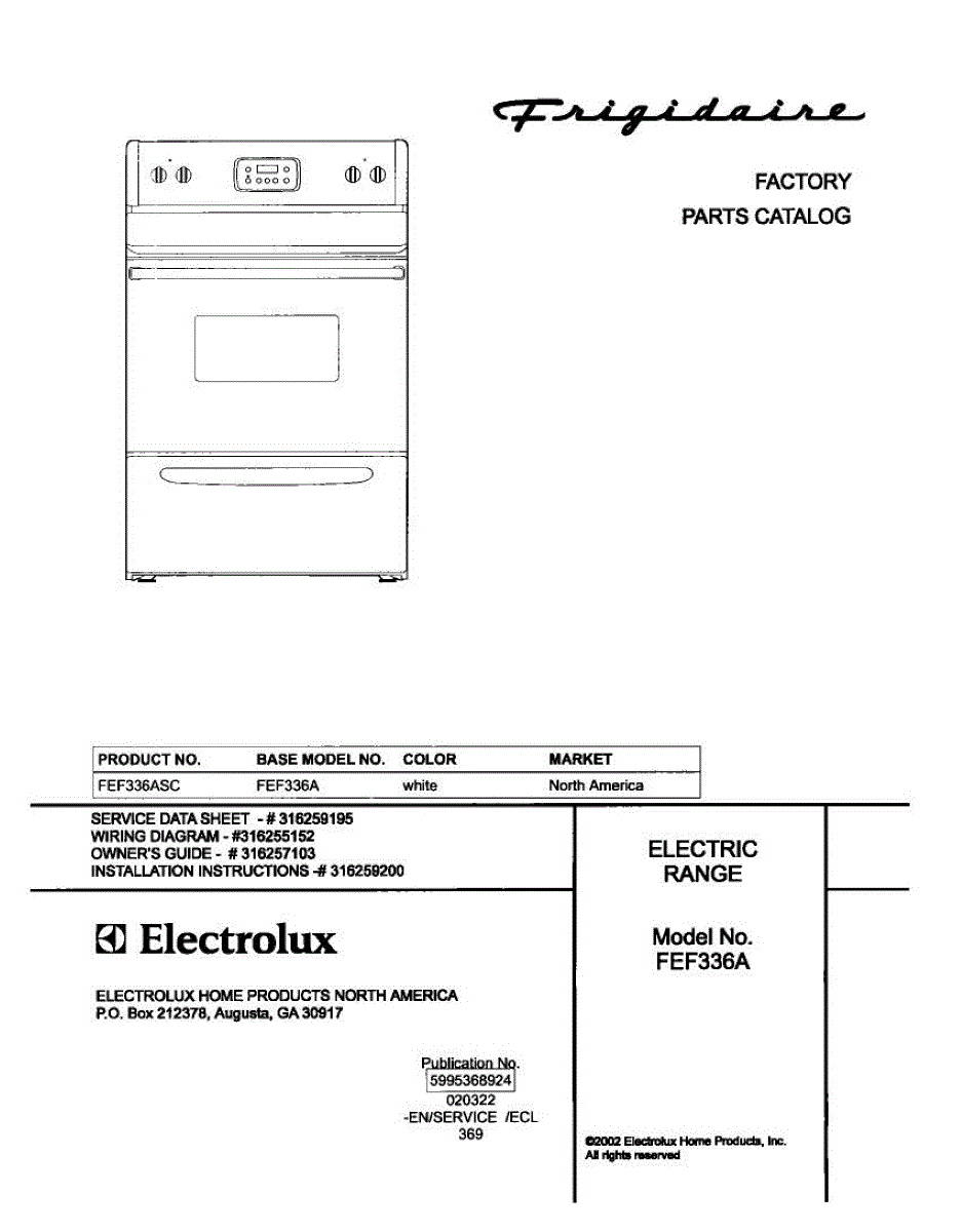 Parts for Frigidaire FEF336ASC: 01 - Cover Parts