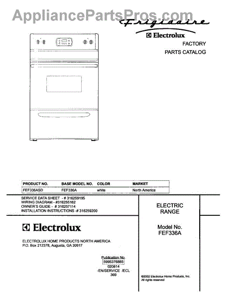 Parts for Frigidaire FEF336ASD: 01 - Cover Parts