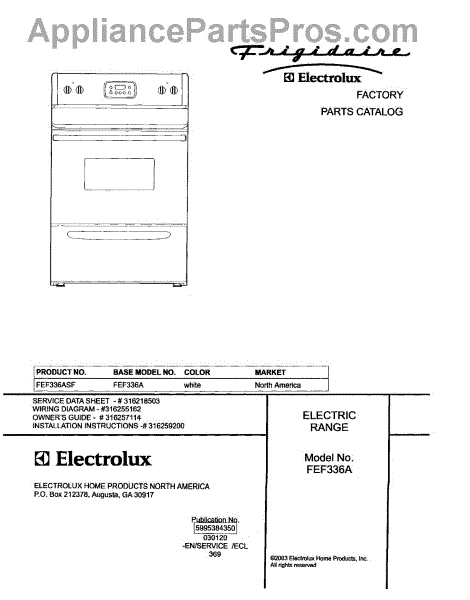 Parts for Frigidaire FEF336ASF: 01 - Cover Parts