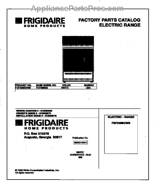 Parts for Frigidaire FEF336BGWB: 01 - Cover Parts