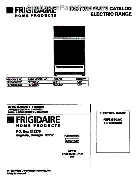 Parts for Frigidaire FEF336BGWC: 01 - Cover Parts