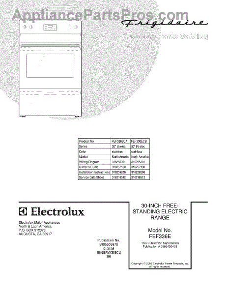 Parts for Frigidaire FEF336ECA: 01 - Cover Parts