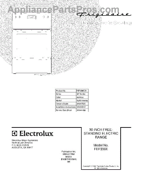 Parts for Frigidaire FEF336ECX: 01 - Cover Parts